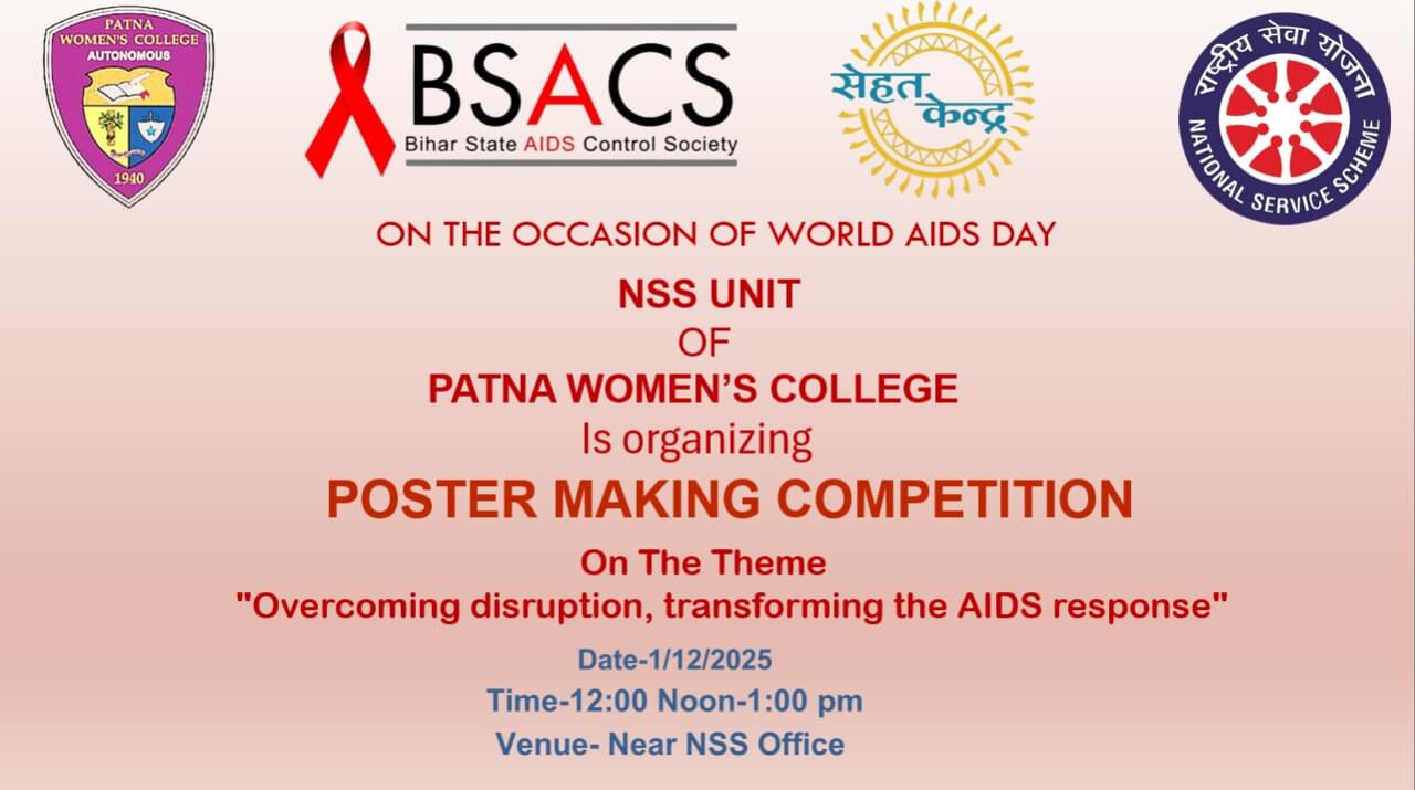 *Programme: Poster Making Competition Date: 1/12/2025 * Time: 12:00 noon to 1:00 pm Venue: NSS office, Patna Women’s College On the Eve of World AIDS Day, the NSS Unit of Patna Women’s College organized a Poster Making Competition to deepen awareness about HIV/AIDS and emphasize the global call for action Read More…