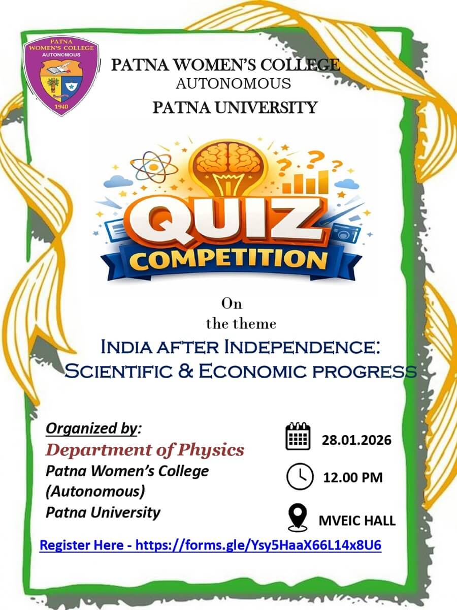 On January 28th, 2026, the Department of Physics, Patna Women’s College (Autonomous), Patna University organised a Quiz Competition on the theme “India After Independence – Scientific and Economic Progress”, celebrating the journey of our nation through knowledge, curiosity, and intellectual engagement. The event encouraged students to explore India’s remarkable achievements Read More…