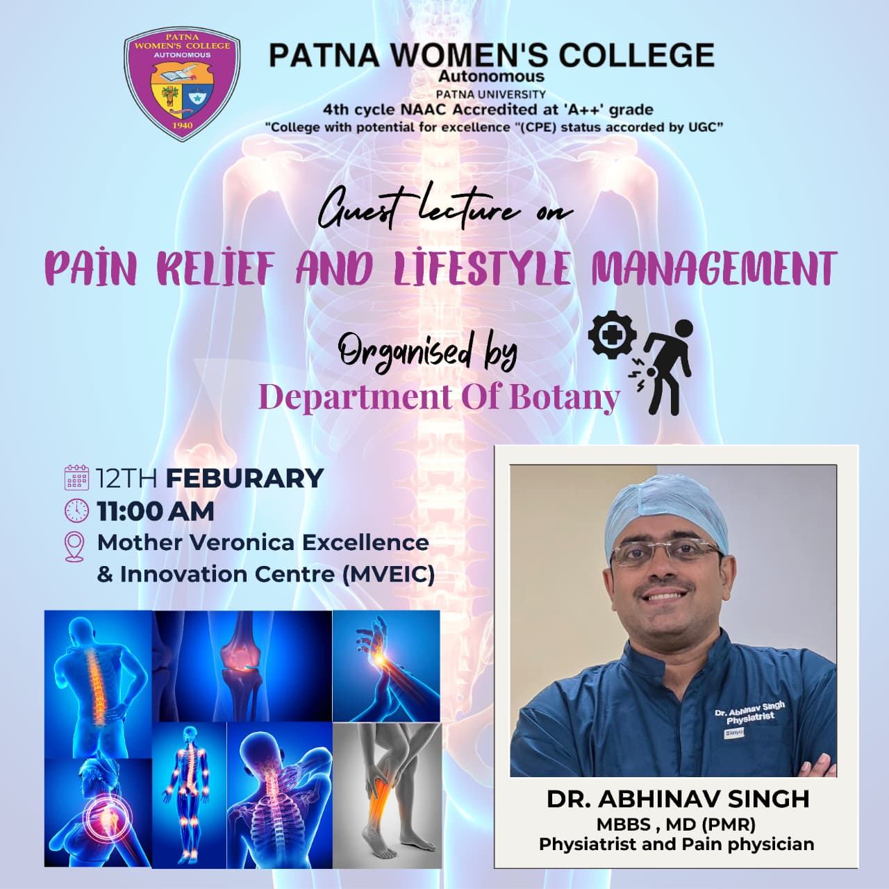The Department of Botany, Patna Women’s College (Autonomous), Patna University organized a Guest Lecture on “Pain Relief and Lifestyle Management” on 12 February 2026 at 11:00 AM at the Mother Veronica Excellence & Innovation Centre (MVEIC). The programme was organized with the objective of creating awareness among students about pain Read More…