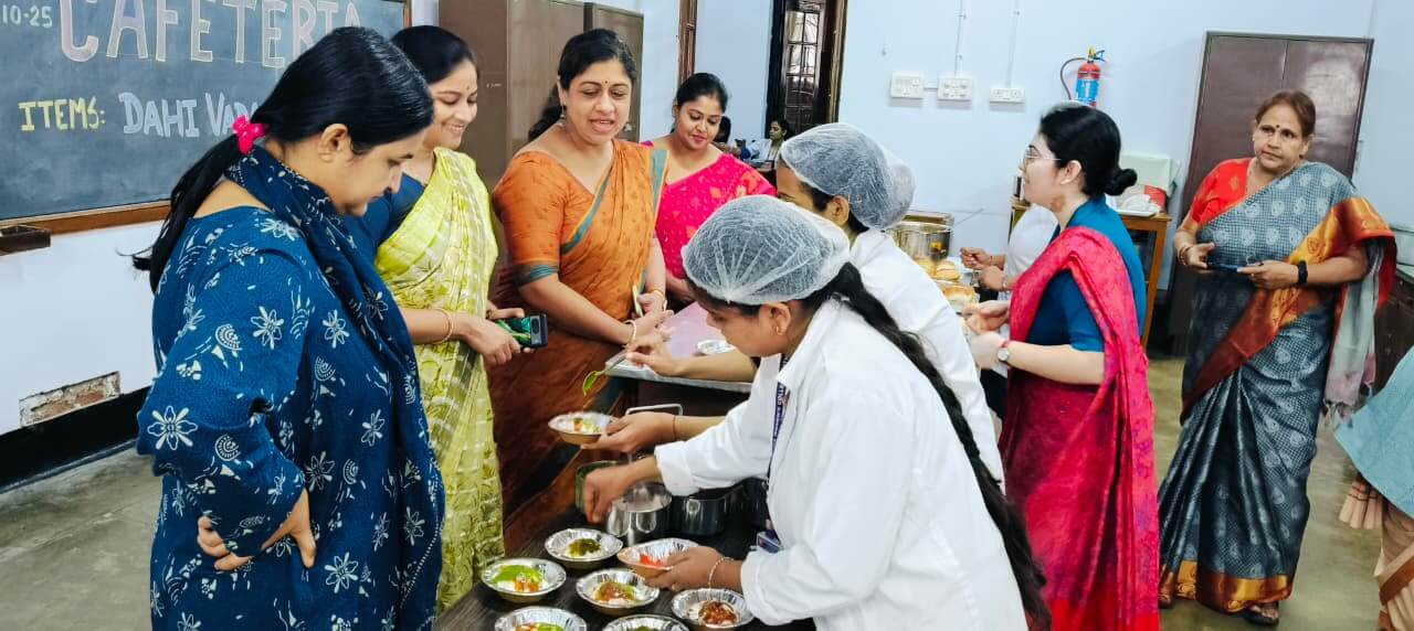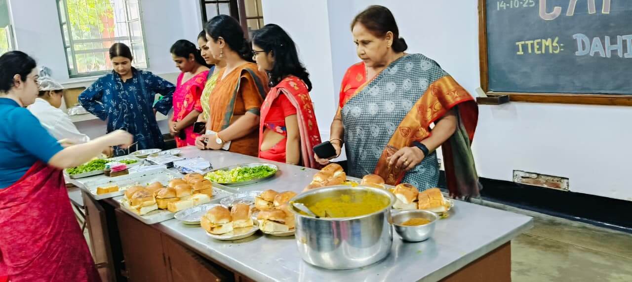 Cafeteria a workshop to give hands on training in quantity cooking and selling, was organised by the Department of Home Science on 14th of October 2025 . The venue of the cafeteria was Room no 28. 6 Students from Semester III (P.G.) and Semester V (U.G.) participated in this activity. The menu of the Cafeteria was Pav Bhaji and Dahi bada. Standardised recipes were used to prepare the food items so that the quality and quantity of the food remained consistent. Good hygiene was maintained while preparing the food. Excellent quality food at affordable prices as compared to commercial outlets were prepared and served on the campus. The food was relished by the teaching and non teaching staff as well as the students. The activity was a huge success and was highly appreciated by the students and staff. The program was organized under the supervision of Dr. Sister M. Tanisha A.C., Head, Department of Home Science.The Cafeteria was executed by the students under the guidance of Dr. Sunita Kumari, Assistant Professor, Department of Home Science.