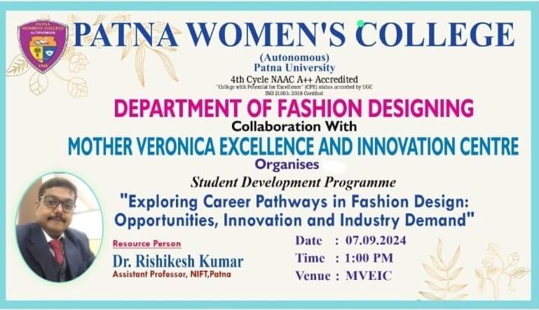 Name of the Activity : Student Development Programme on the topic “Exploring Career pathways in Fashion Design : Opportunities, Innovation and Industry Demand” in collaboration with Dept. of Fashion Designing Total No of Participants : 45 Date : 07.09.2024 The Department of Fashion Designing at Patna Women’s College (Autonomous) Patna University hosted a Guest Lecture […]