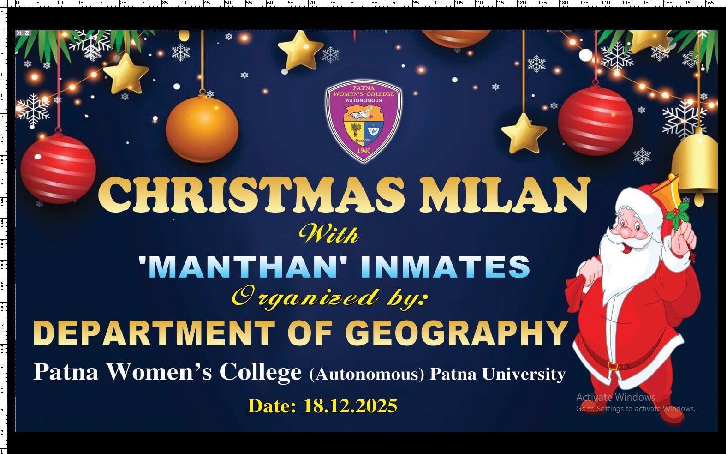 A special Christmas Milan Programme was conducted by the Department of Geography on 18.12.2025 with the inmates of NGO Manthan. 40 children under the guidance of Dr. Father T. Nishant S.J. Director, Manthan and staff visited Patna Women’s College.