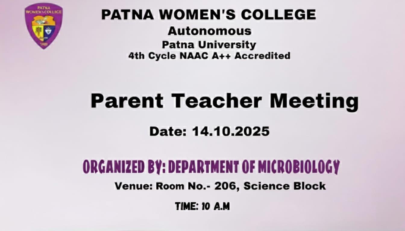 The Department of Microbiology, Patna Women’s College (Autonomous), Patna University, organized a Parent-Teacher Meet for the B.Sc Semester III students on 14th October, 2025, in the department premises. The meet aimed to enhance interaction between parents and teachers, for students progression. Parents eagerly participated in the event and engaged in meaningful discussions with the faculty. […]