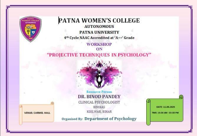 An Exhibition-cum-Model competition was organized in the Department of Psychology, Patna Women’s College on the occasion of World Mental Health Day’25 on 10th October at 10:00 AM. The event was conducted under the guidance of Respected Principal, Dr. Sister M. Rashmi A.C. and supervision of Dr. Nupur Sinha, Head, Department of Psychology, Patna Women’s College. […]