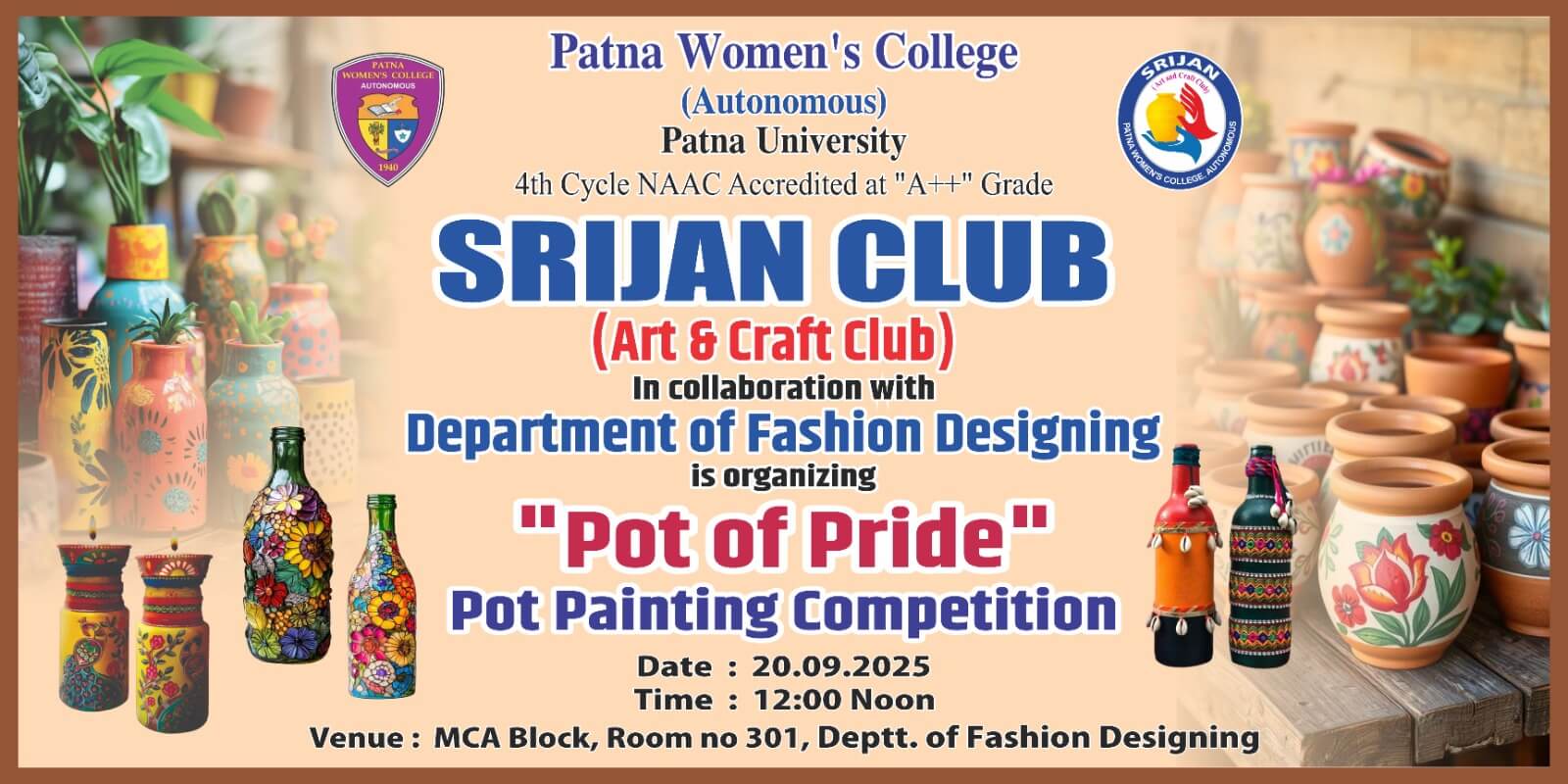 On 20th September 2025 the Srijan Club in Collaboration with Department of Fashion Designing, Patna Women’s College (Autonomous),organized a Pot Painting competition on the theme “Pot of Pride”.60 Srijan Club members participated in this competition and showcasing the pride of Bihar encouraged students to celebrate the rich cultural, tradition and heritage of India through their […]