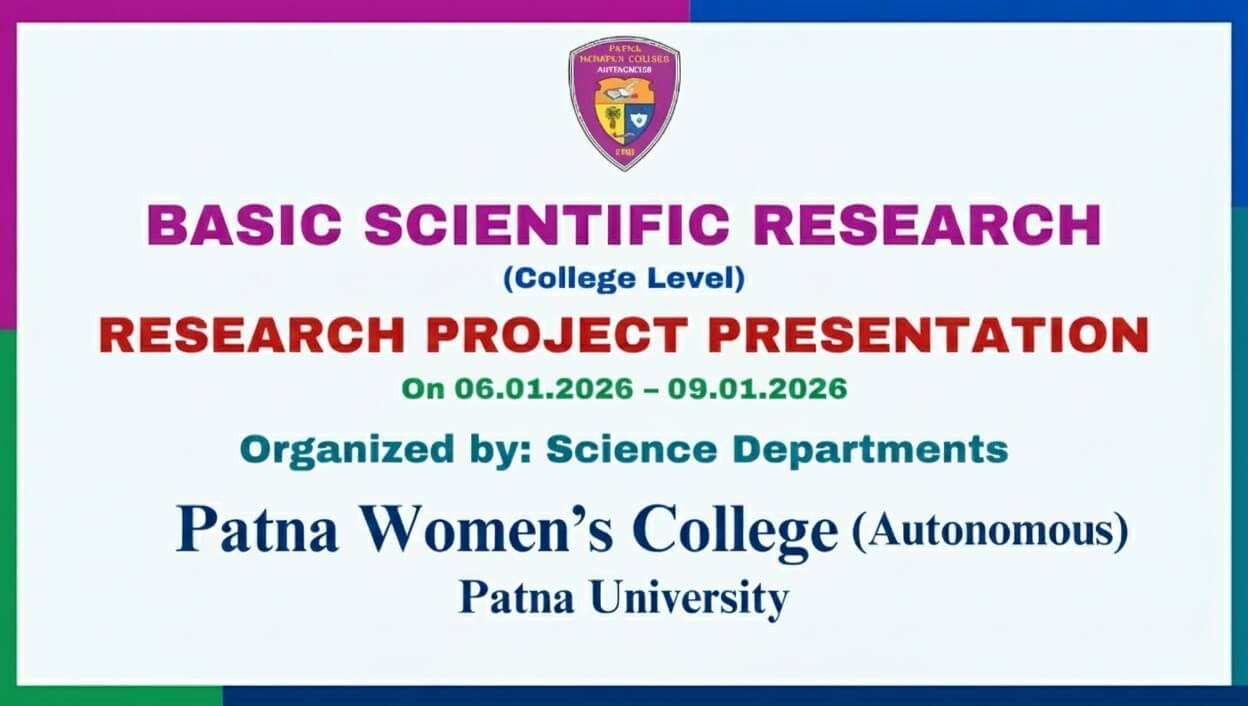 The Science Departments of Patna Women’s College (Autonomous), Patna University successfully conducted the Basic Scientific Research (BSR) Presentation 2026 for Science students from 6th to 9th January, 2026. The programme aimed to promote scientific inquiry, research aptitude, and experiential learning among undergraduate and postgraduate students. Students from various science departments Read More…