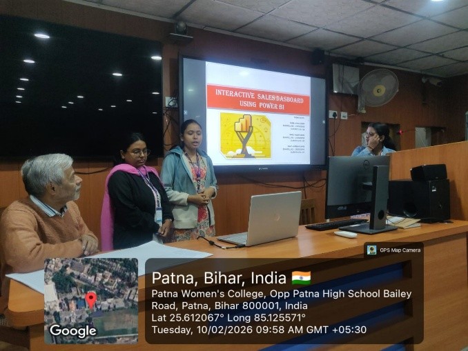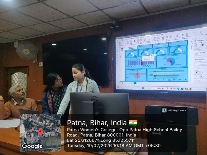 A presentation session on “Data Visualization and Its Tools” was organized for PGDCA Semester-I students on 10th February 2026, from 9:15 a.m. to 11:05 a.m. It was conducted under the guidance of Ms. Sushmita Chakraborty, Coordinator, PGDCA & Assistant Professor, Department of Computer Applications (MCA), and evaluated by Mr. Braj Kishor Prasad, Assistant Professor, Department of Computer Applications (MCA).