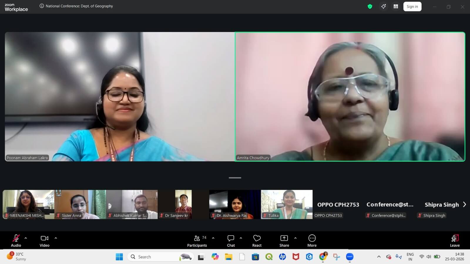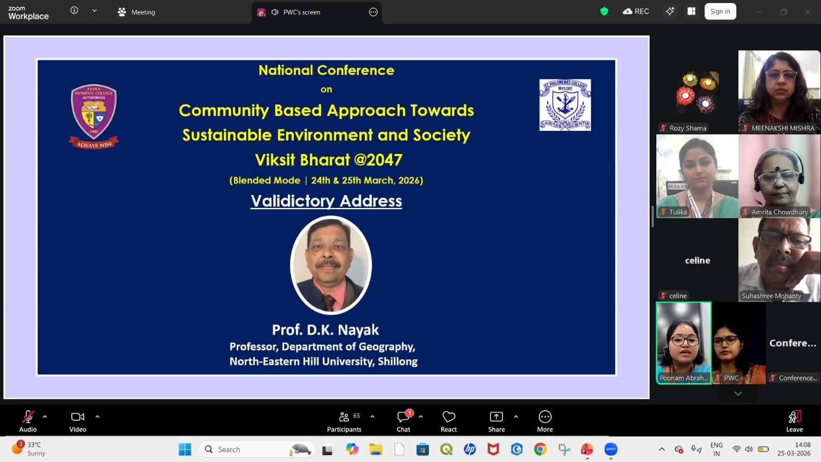 The second day of the National Conference on “Community Based Approach Towards Sustainable Environment and Society: Viksit Bharat @2047”, organized by the Department of Geography, Patna Women’s College (Autonomous), Patna, in collaboration with St. Philomena’s College (Autonomous), Mysuru, was successfully conducted on 25th March 2026 in online mode.