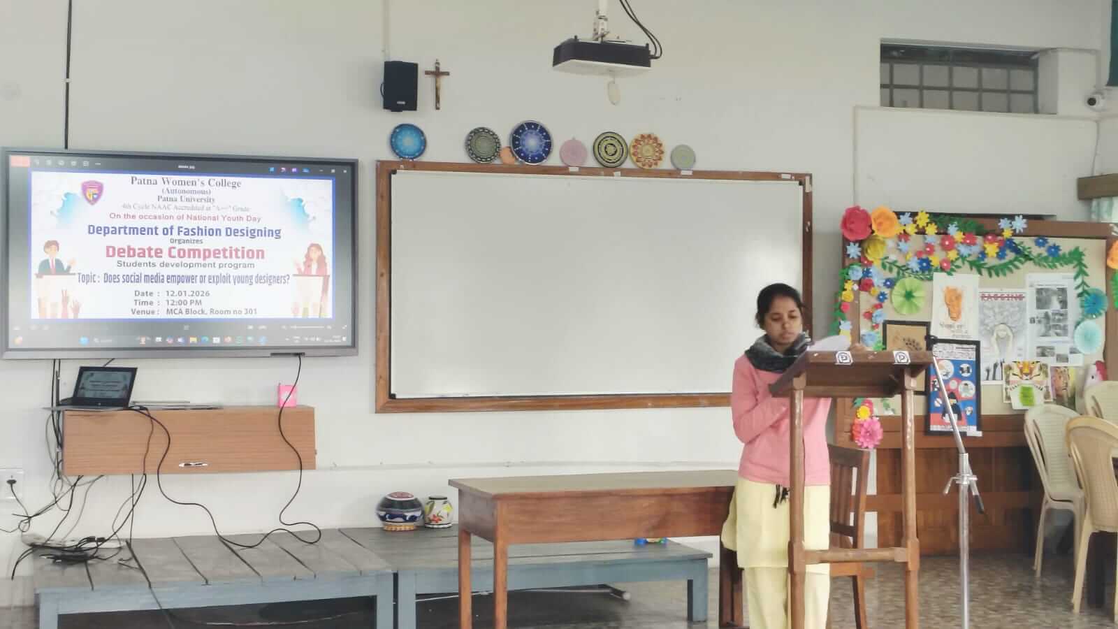 On the occasion of National Youth Day,12.01.26 the Department of Fashion Designing, Patna Women’s College organised a debate competition on the topic- “Does social media empower or exploit young designers?” The event aimed to encourage critical thinking among youth about growing influence of digital platforms on creative careers.