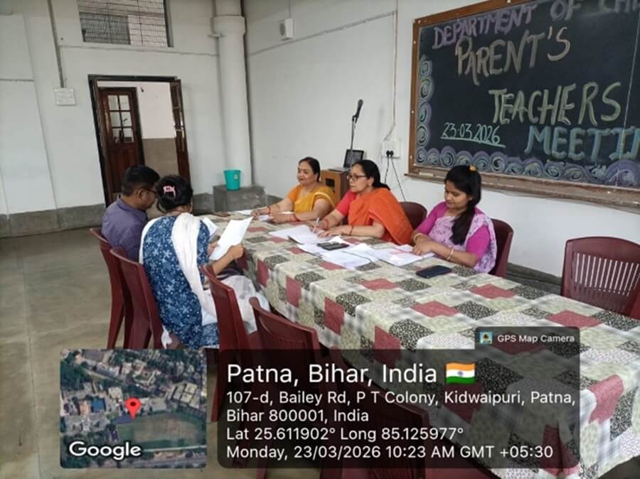 The Department of Chemistry, Patna Women’s College, organized a Parent-Teacher Meeting (PTM) on 23rd March 2026 to foster effective communication between parents and faculty members and to discuss the academic progress and overall development of the students.