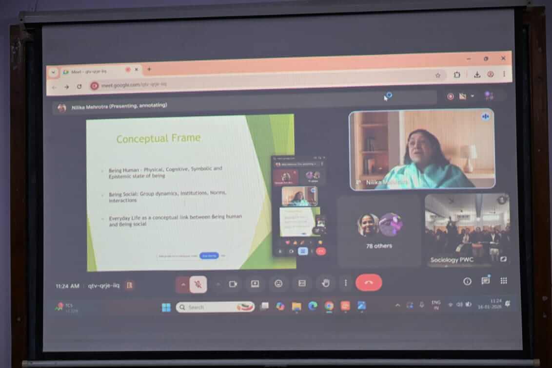 During the lecture, Prof. Mehrotra discussed everyday life as an important sociological and anthropological field of study. She explained how human life is shaped through social interdependence, culture, gender, social structures and lived realities. The lecture drew upon theoretical perspectives and scholars such as G.H. Mead, Alfred Schutz, Erving Goffman, Pierre Bourdieu, Henri Lefebvre and Michel de Certeau, along with feminist insights on care work and everyday experiences. The webinar concluded with an interaction session and a vote of thanks, appreciating the speaker and all participants for making the memorial lecture successful and enriching.