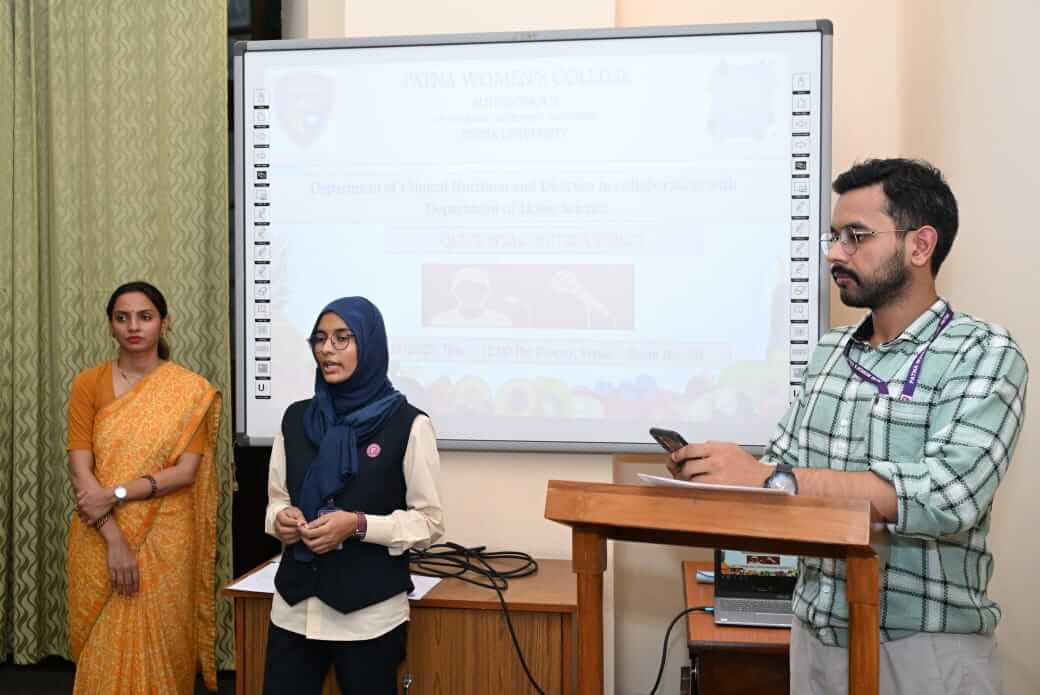 September 11, 2025, an Extempore Competition was organized to test students’ spontaneity and public speaking abilities. The event was initiated by Assistant Professor Mr. Siddhant Parashar, who explained the format to participants. Twenty-eight students from both departments randomly selected topics on nutrition, health, and lifestyle and delivered two-minute speeches. The competition was judged by Dr. Shobha Srivastava from the Department of Zoology, Dr. Pinky Prasad from the Department of Botany, and Dr. Jaya Philip from the Department of Microbiology, who assessed speeches based on content quality, delivery, and confidence. Adeeba Kulsum from B.Sc. Clinical Nutrition and Dietetics (Semester I) secured first position, followed by her classmate Aiman Ali in second place. Sadhana Kumari from B.A. Home Science (Semester III) took third place, while Pratibha from M.A. Home Science (Semester I) received the consolation prize. The event successfully built communication skills and knowledge regarding health nutrition and life style among the participants.