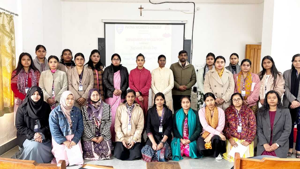 On the occasion of National Youth Day, observed on 12 January, the Department of Social Work, Patna Women’s College (Autonomous), under the P.A.C.E. Programme, organized a celebration on 15 January 2026 on the theme “Ignite the Self, Impact the World.” The programme began with a documentary screening on the life and ideals of Swami Vivekananda, inspiring students to reflect on self-awareness, discipline, and social responsibility.This was followed by a speech competition with five groups, where students shared views on youth empowerment, leadership, self-development, and nation-building. The event helped students enhance confidence, public speaking skills, and understanding of their role in society. Group 3 won first prize, followed by Group 1 in second place and Group 5 in third place.