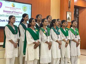 On September 13, 2025, the Srishti Environment Club of Patna Women’s College organized its Oath Taking Ceremony under the ongoing Season of Creation 2025. The program began with the melodious Srishti Anthem, which reflected the club’s vision of promoting environmental awareness and sustainable living. Ms. Meenakshi Mishra, Coordinator, Srishti Environment Club, welcomed the gathering and briefed on the mission, vision, and core functions of the club, emphasizing the role of students as change agents. Dr. Amrita Chaudhary, Head, Department of Geography, addressed the gathering and inspired students to engage actively in conservation and climate resilience. She also administered the pledge to the newly appointed office bearers—Komal Pandey (Secretary) and Shreya (Joint Secretary)—as well as to the members. A total of 125 new members from UG Semester I solemnly pledged their commitment to environmental stewardship. The event concluded with a Vote of Thanks by Ananya from the Department of Geography, marking a strong step toward a greener, more sustainable future.