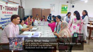 The Department of Botany conducted a Parent-Teacher Meeting for students of Semesters I, III, and V on September 20, 2025, from 9:30 AM to 11:30 AM in Room No. 306. The meeting witnessed a strong turnout of parents, who were briefed on their wards’ academic performance, including marks and attendance records. Parents expressed genuine interest in their children’s overall progress and actively engaged in discussions. All faculty members were present and interacted meaningfully with the parents, addressing their queries and providing valuable insights.