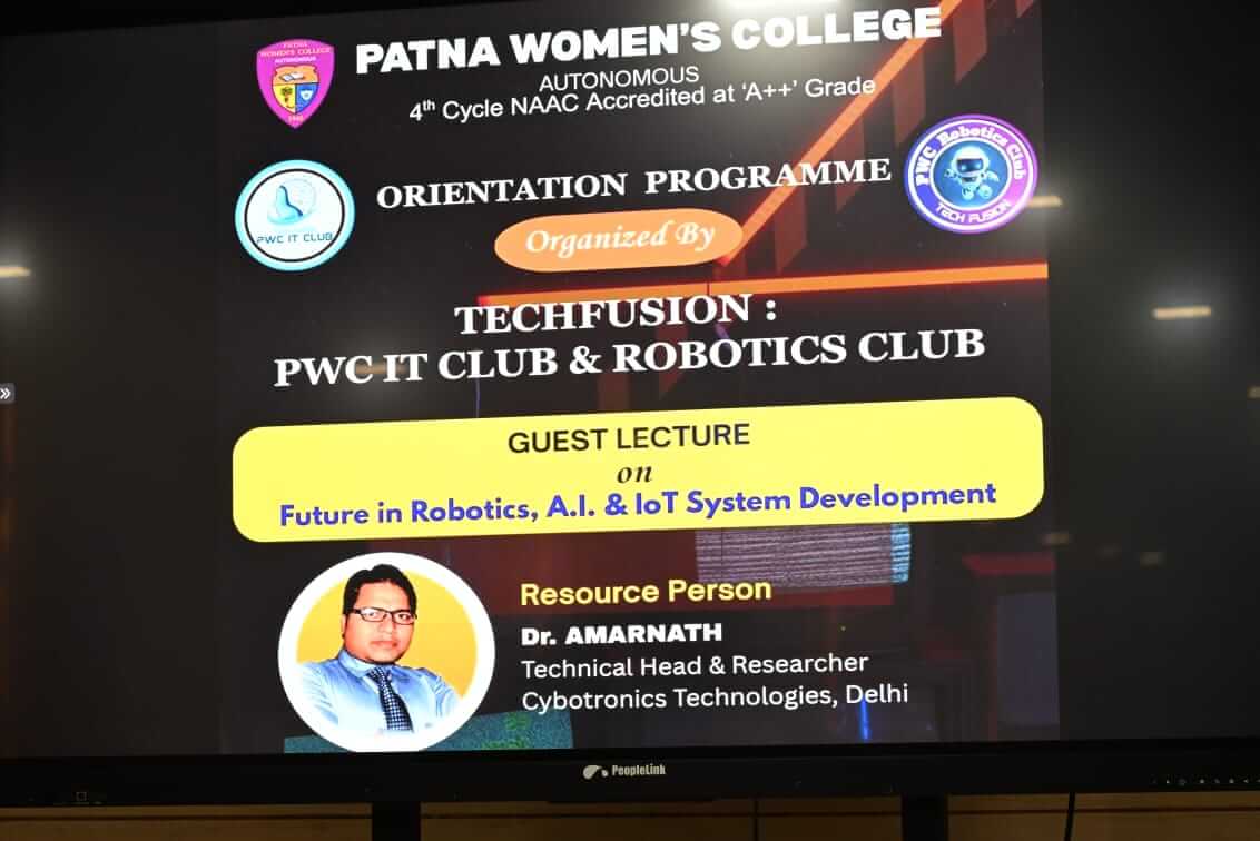 On January 08, 2026, PWC Tech Fusion: IT and Robotics Club successfully organized an Orientation Session for first-year students along with a Guest Lecture by Dr. Amarnath, Technical Head and Researcher Cybotronics Technologies, New Delhi at BJ Sullivan Hall. The session aimed to introduce students to the club’s vision, mission and upcoming technical activities. The program began with a welcome address by the respected Head of the Department, BCA, Ms. Manisha Prasad. The guest Lecture was delivered by Dr Amarnath. During the session, he shared insightful knowledge on emerging technologies, robotics, and