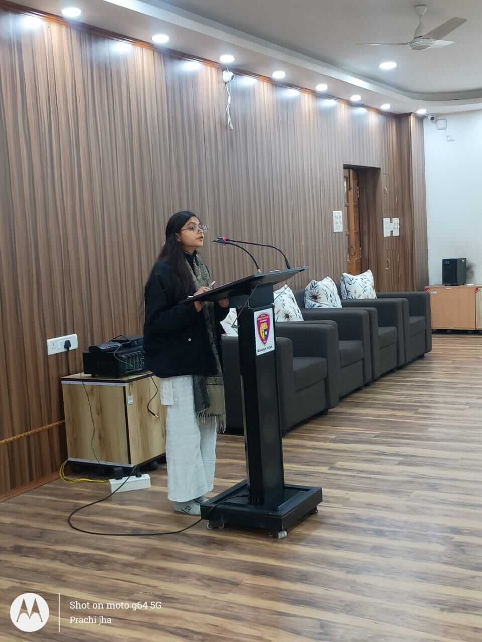 The programme witnessed enthusiastic participation from students, who presented insightful and well-structured speeches on the role of youth in nation-building. The competition was judged by Dr. Vinita Priyadarshi, Head, Department of Political Science, and Dr. Kirti, Department of Philosophy. The judges appreciated the participants’ clarity of thought, originality of ideas, and confident delivery.