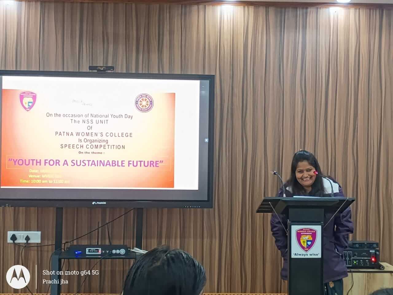 On 10th January 2026, the National Service Scheme (NSS) organized a Speech Competition on the eve of National Youth Day in MVEIC Hall of Patna Women’s College at 10:00 a.m. with the objective of fostering awareness, confidence, and leadership among the youth.