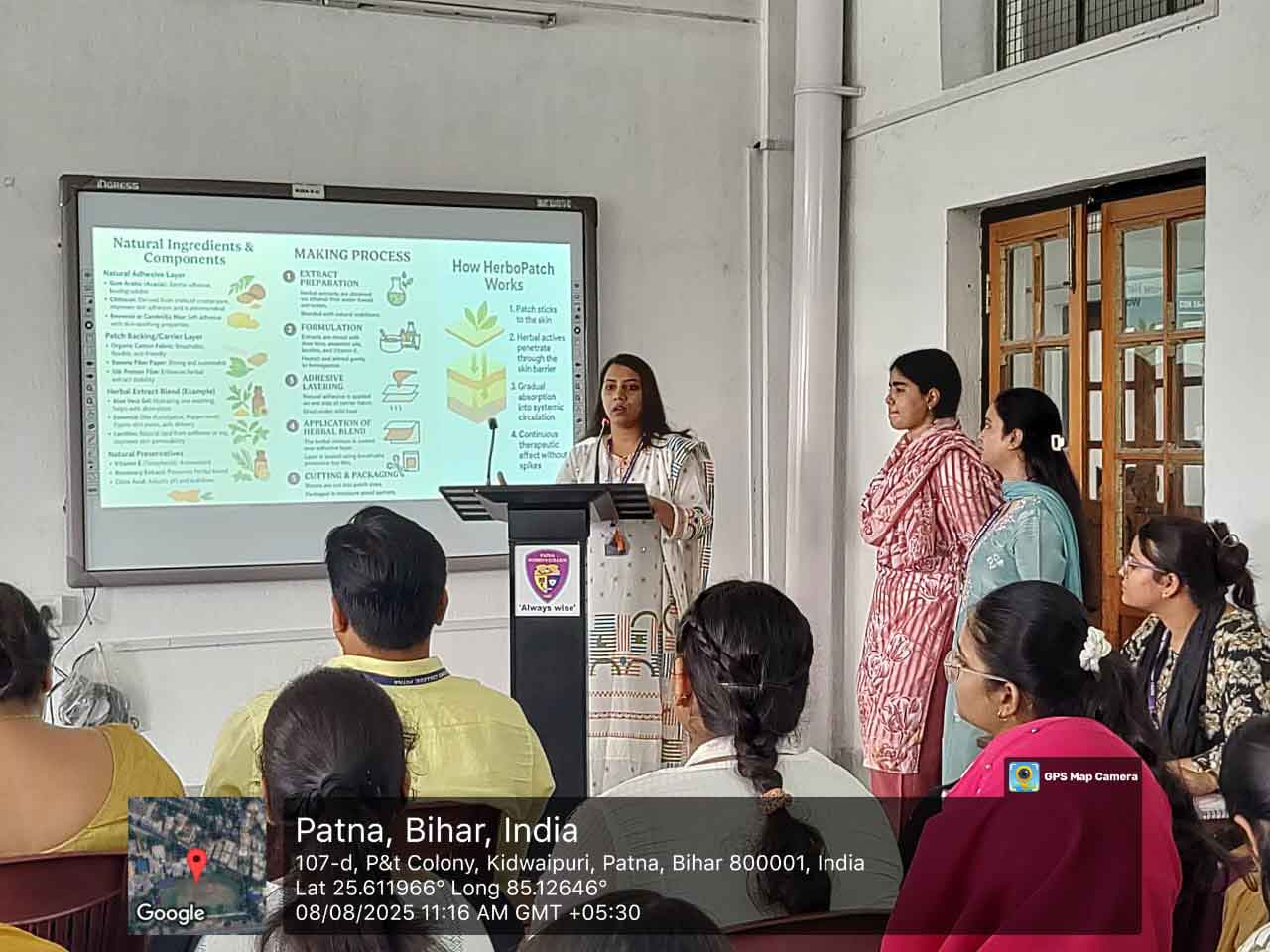 The Department of Biotechnology, Patna Women’s College, organized a Startup Ideas Presentation on August 8, 2025, showcasing the creativity and innovation of its students. The event was conducted under the supervision of Dr. Alok Ranjan, with valuable guidance from Dr. Arti Kumari, Head, Department of Biotechnology. Faculty members Dr. Vivek Raj and Dr. Premlata Kumari, Assistant Professors in the department, were also present and encouraged the participants throughout the session.
