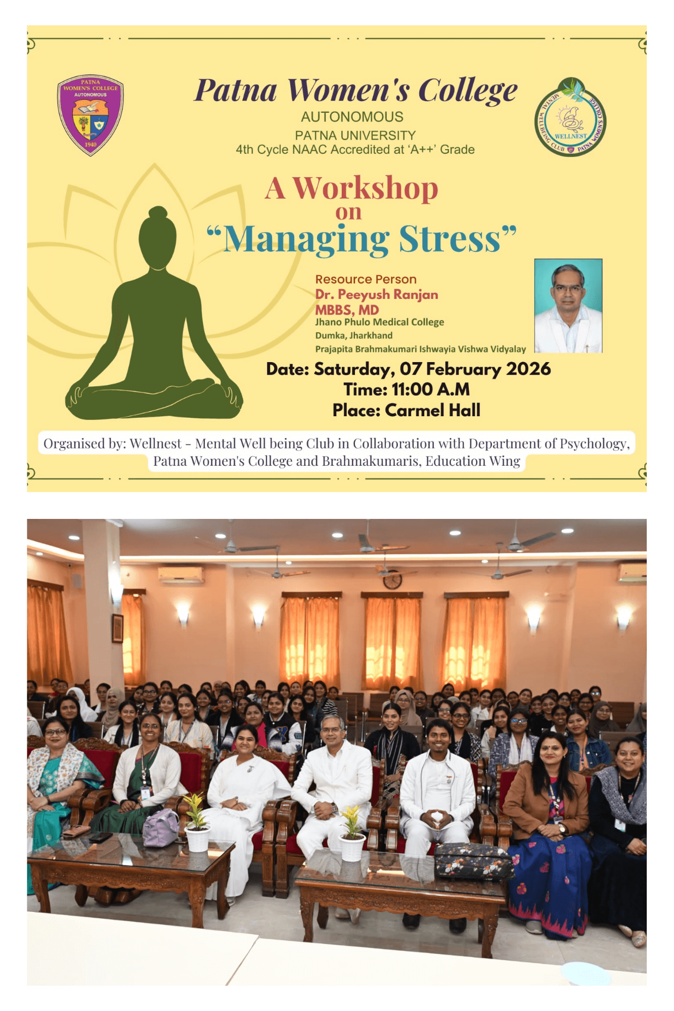 Organised by: Wellnest – Mental Well being Club in Collaboration with Department of Psychology and Brahmakumaris, Education Wing