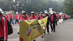 On the occasion of World AIDS Day (1 December 2025), the Bihar State AIDS Control Society (BSACS) organized a Red Ribbon Rally to spread awareness about HIV/AIDS and promote preventive health behaviour among the youth. NSS volunteers of Patna Women’s College actively participated in the event with great enthusiasm and discipline. The volunteers reached the venue at 5:45 a.m., after which T-shirts and caps were distributed by 6:00 a.m. to all participants. The rally formally commenced at 6:45 a.m., symbolizing solidarity with people living with HIV and reinforcing the message of ending stigma and discrimination.